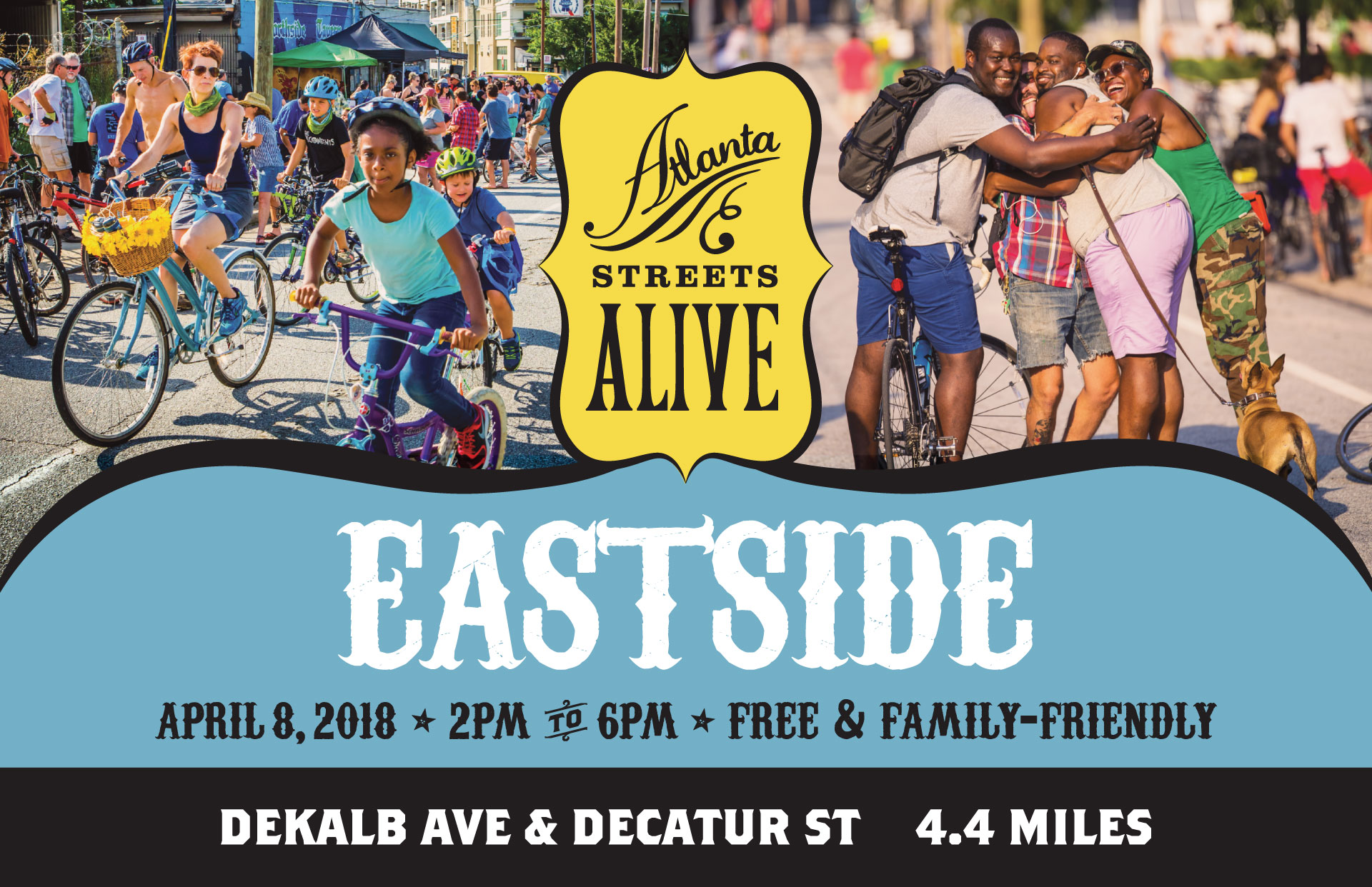 On Sunday, April 8, Atlanta Streets Alive is activating a brand-new route, connecting Kirkwood and Lake Claire neighborhoods to Downtown along 4.4 miles of Decatur Street and DeKalb Avenue. The street will be yours to walk, roll, bike and play from 2:00 to 6:00 pm!